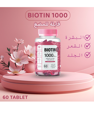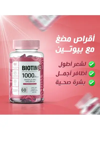 امنحي شعرك، بشرتك وأظافرك العناية اليومية التي تحتاجها مع GRO Gummies Biotin 1000mcg بنكهة التوت البري اللذيذة.