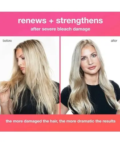 تم تصميمه خصيصًا للشعر المتضرر من الصبغات والتفتيح والمعالجات الكيميائية ليعيد بناء سلاسل الكيراتين المكسورة، مما يمنحك مظهرًا أكثر نعومة وحيوية دون الحاجة إلى شطف.