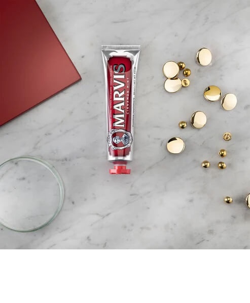 يأتي المعجون في عبوة فاخرة بحجم 85ml مناسبة للاستخدام اليومي أو أثناء السفر، مع تركيبة عالية الجودة تجعل تجربة تنظيف الأسنان مختلفة كلياً. نكهته الغنية أصبحت اختيارًا مفضلاً لعشّاق مارفيس حول العالم، لما تقدّمه من توازن مثالي بين الدفء والانتعاش.